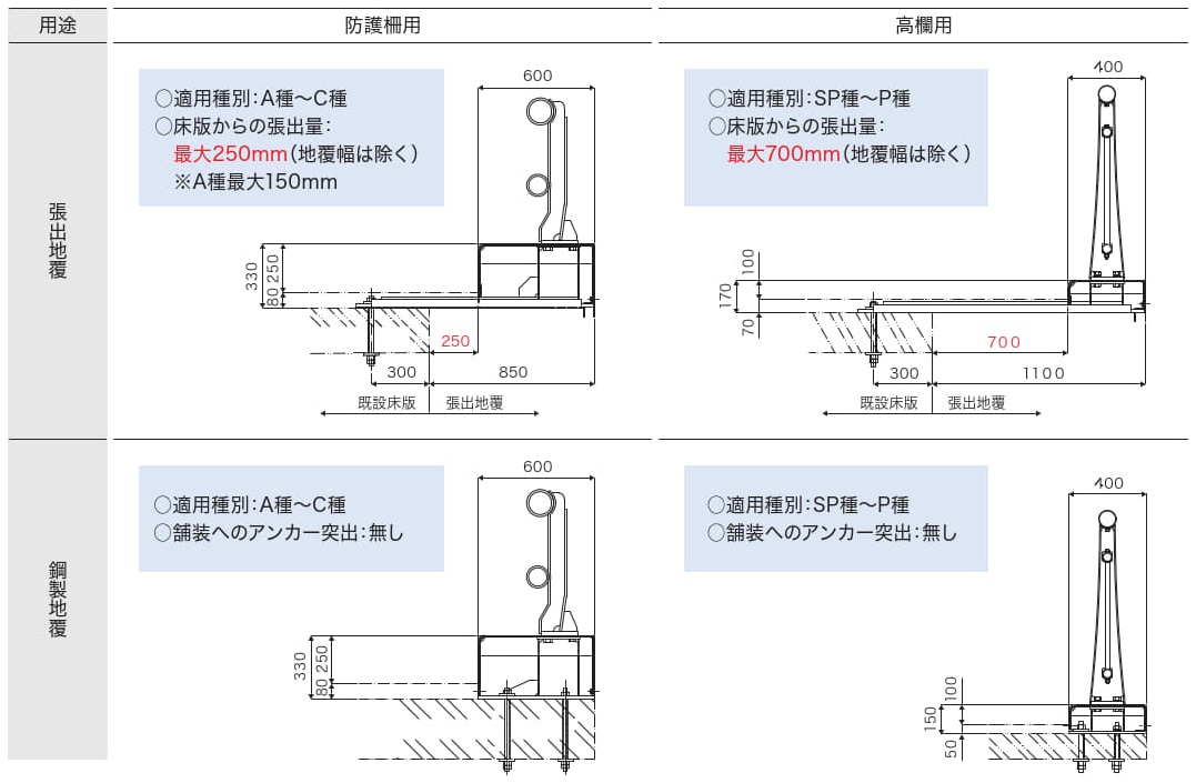 (地覆幅600mm 拡幅量200mm 地覆高250mm)