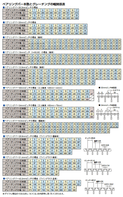 ベアリングバー(グレーチング主部材)の間隔です。