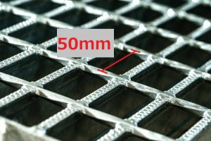 ダイクレのスチールグレーチングの普通目のクロスバーピッチは50mmが標準装備です。
