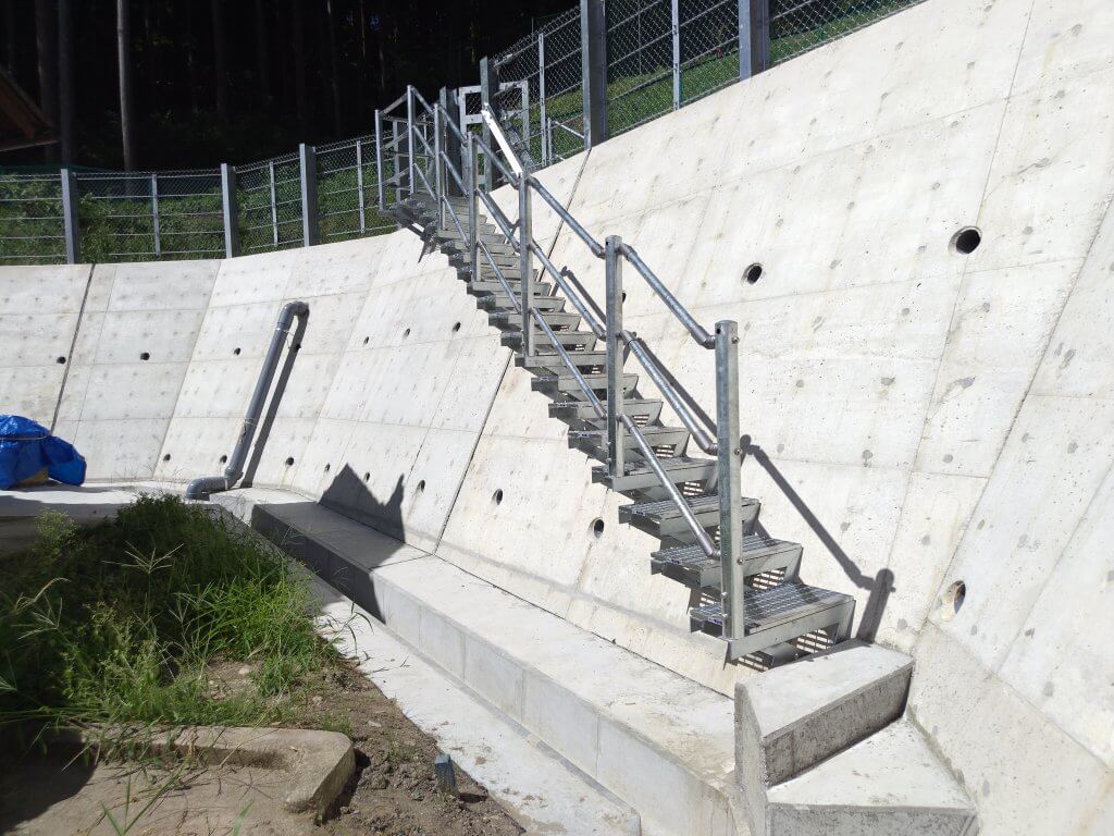 D-stepは、既設の擁壁を利用して新設の通路を設置できる商品です。アンカーを使用した簡単な施工で、型枠工事や養生期間が不要です。そのため、短い工期で施工が可能です。