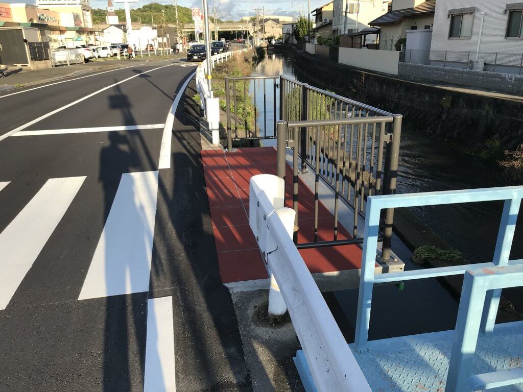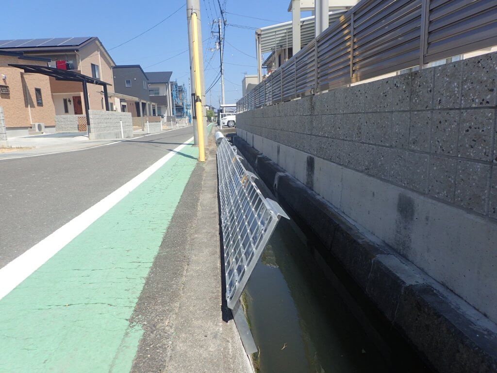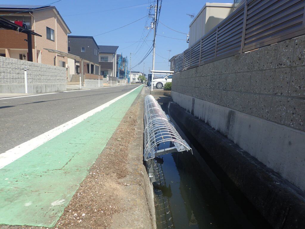 オチナイデは道路幅員を狭めずに人の転落を抑止し、冠水時でも水路の位置を視覚的に把握することが可能です。