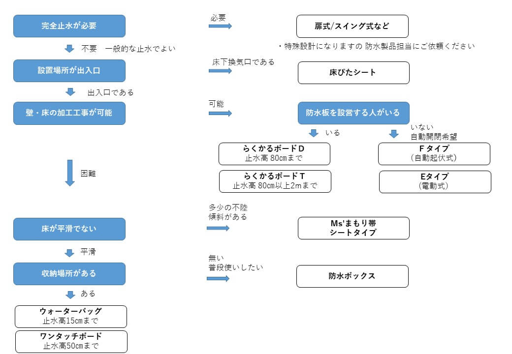 製品 ”防水板各種” または ”簡易型止水製品”