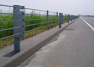 ガードケーブルは、ケーブルに弾力性があり衝突エネルギーの吸収に優れます。