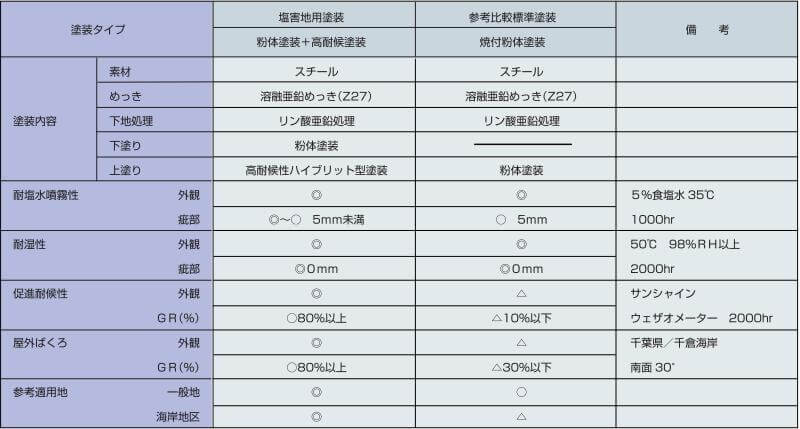 【表面処理(塗装仕上げ)】 標準塗装:塩害地用塗装仕様