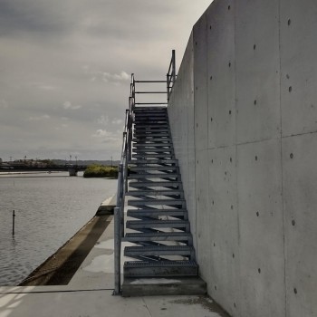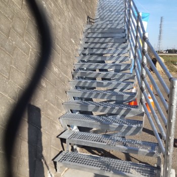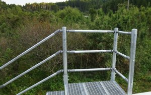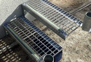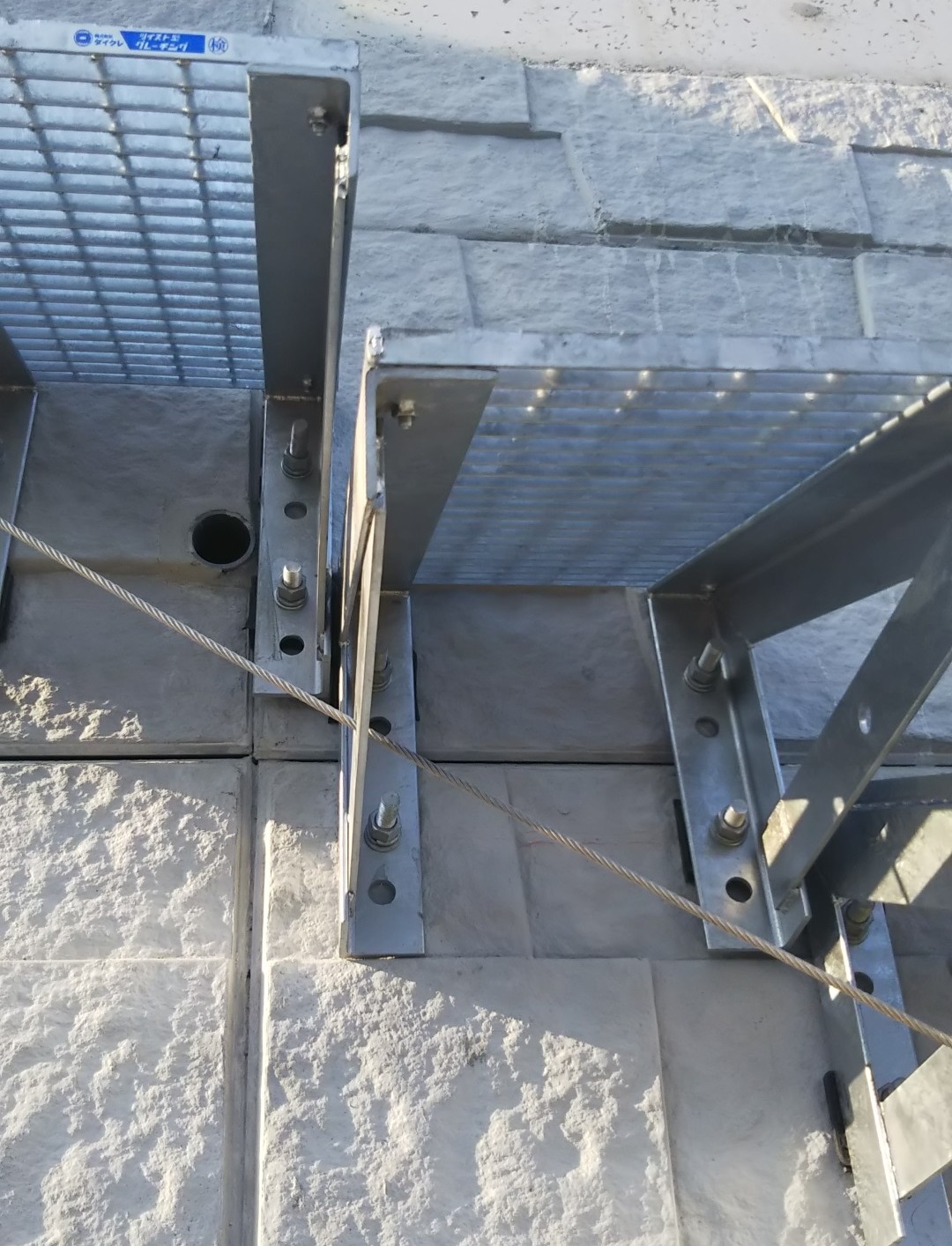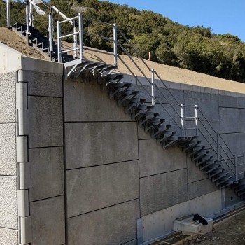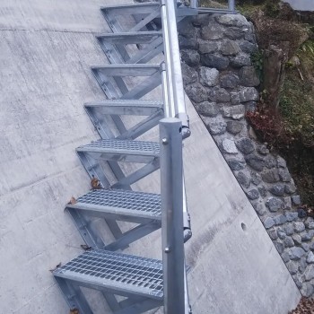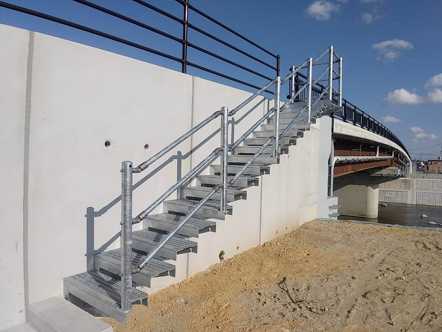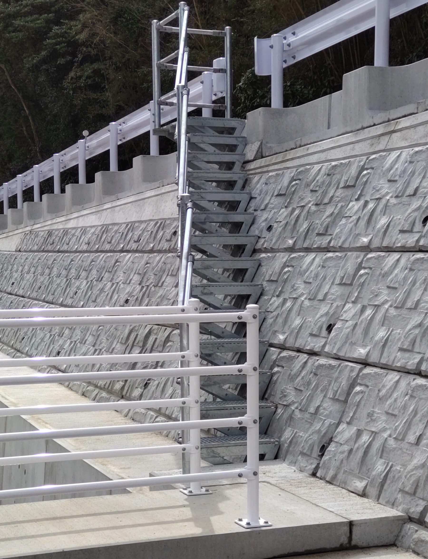 既設の擁壁に後付けできるグレーチング製の階段です。