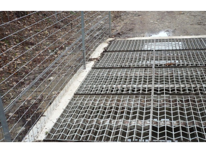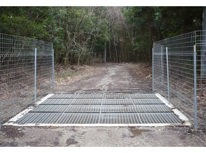 テキサスゲートグレーチングは動物の侵入を防ぎながら、車両は通行できます。