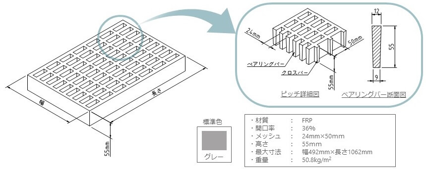 車両対応型FRPグレーチングの形状