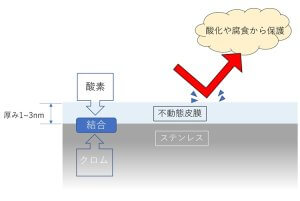 この「さびにくさ」は、表面に形成される不動態被膜によって、酸化や腐食から内部を保護していることに由来します。