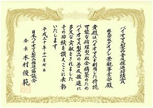 バイオマス樹脂の普及推進に対するこれまでの取り組みが評価され、『第8回 バイオマス製品 普及推進功績賞』を受賞いたしました。