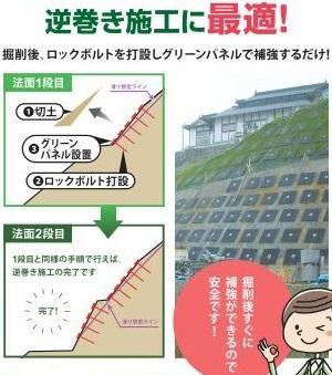 グリーンパネルは逆巻き施工が可能です。非常に軽量なので、安全に逆巻き施工も行えます。