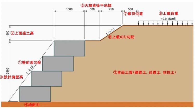 擁壁設計時の注意事項『中詰材の単位体積重量(γd)』が①~④とあるのはなぜですか?